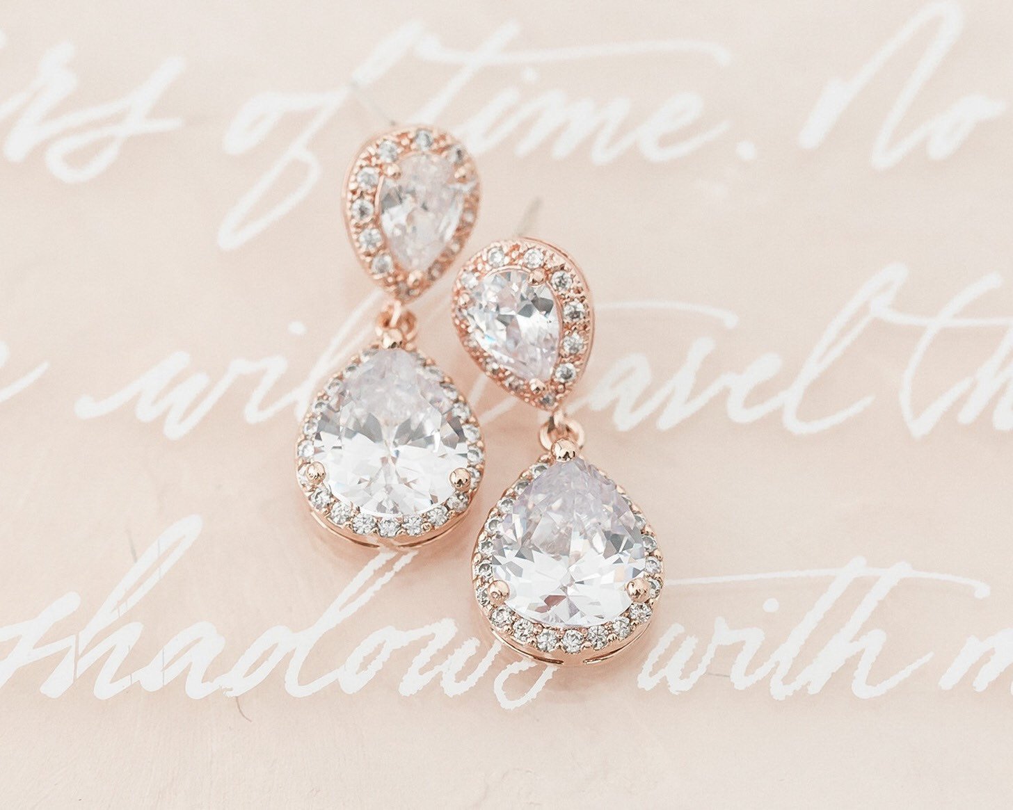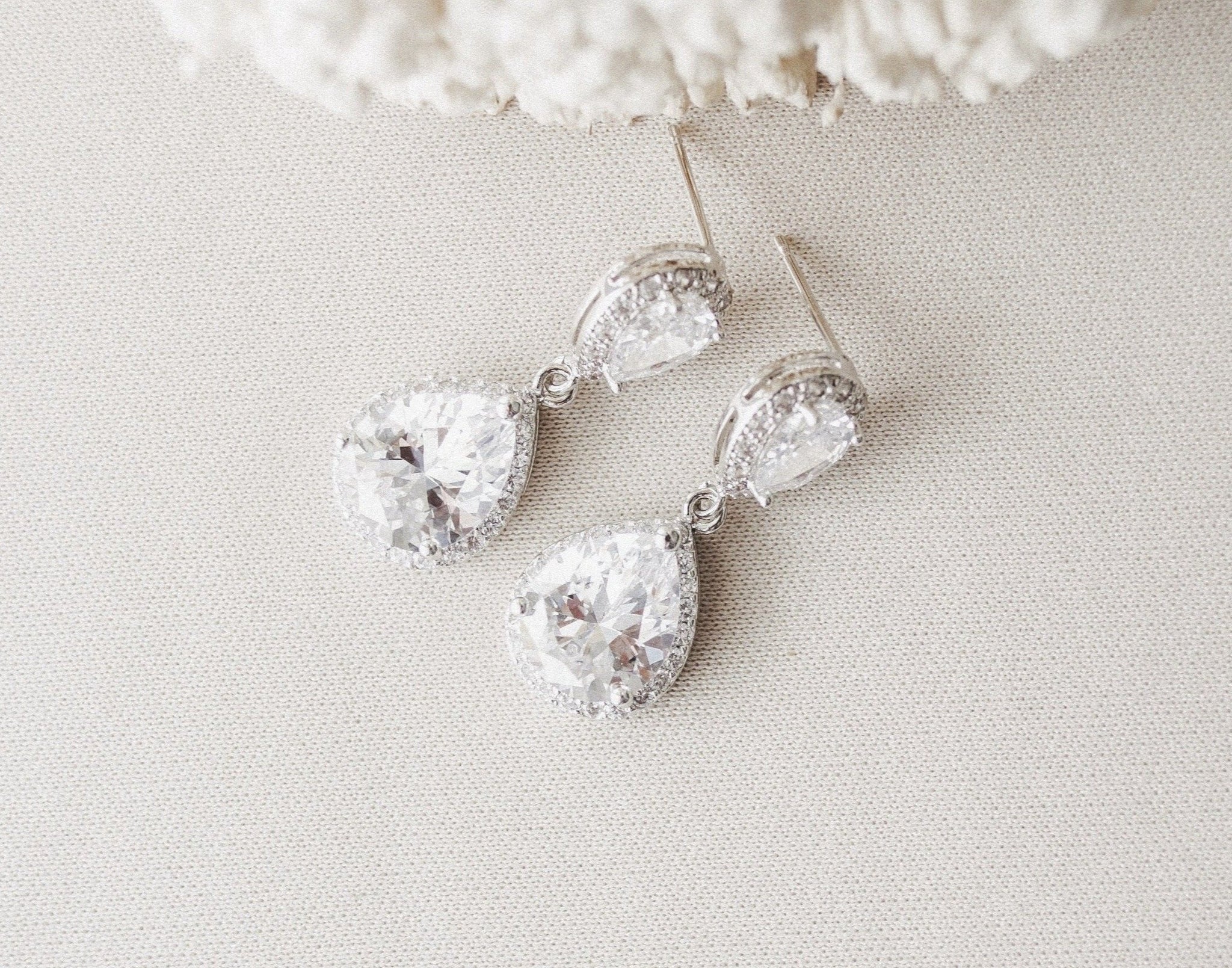 Our classic crystal halo teardrops (CZ) Approx 1" in length Choose your metal: sterling silver, 18kt rose gold plated, or 18kt yellow gold plated The stud (part that goes through your ear) is sterling silver. Includes our signature...Read more