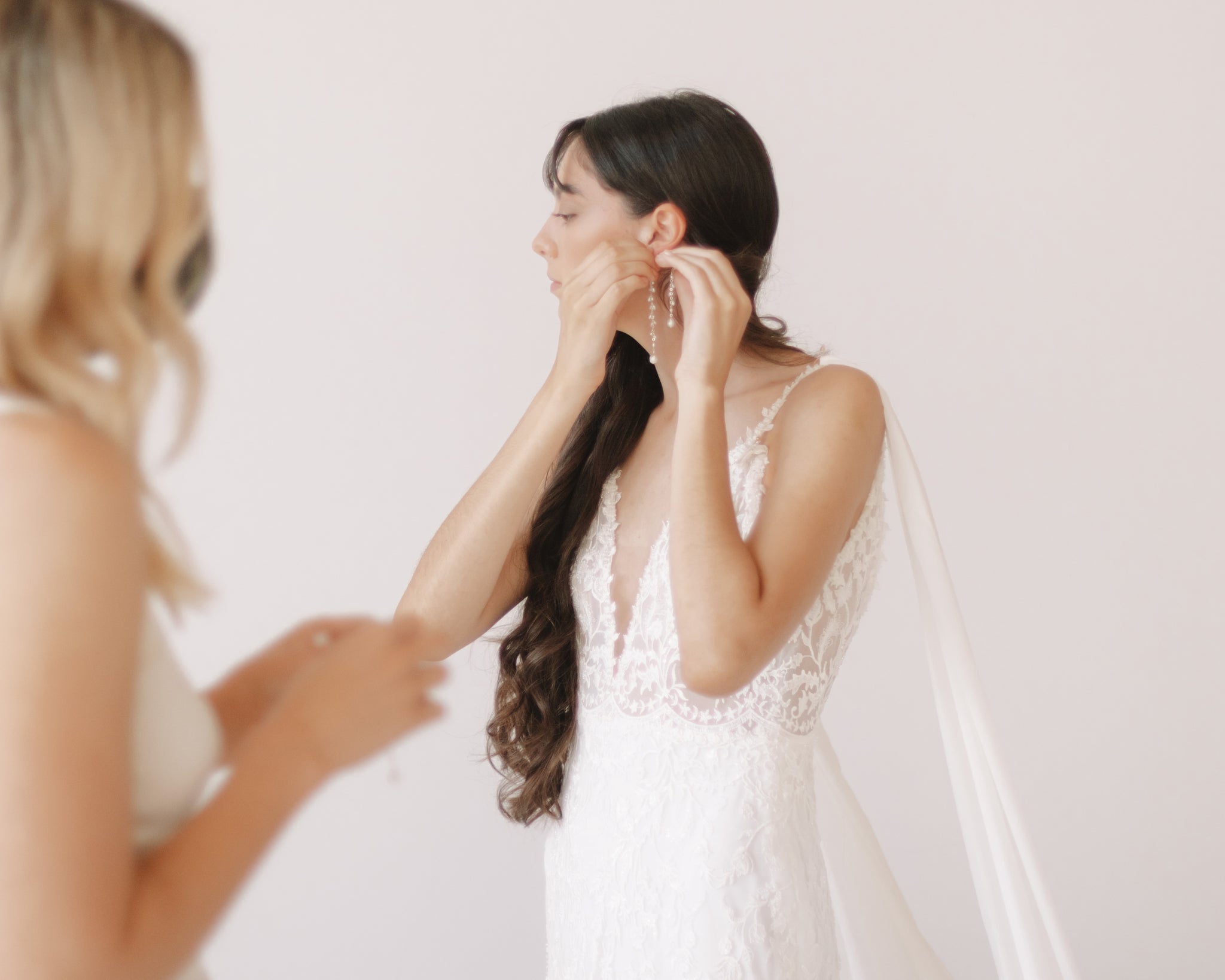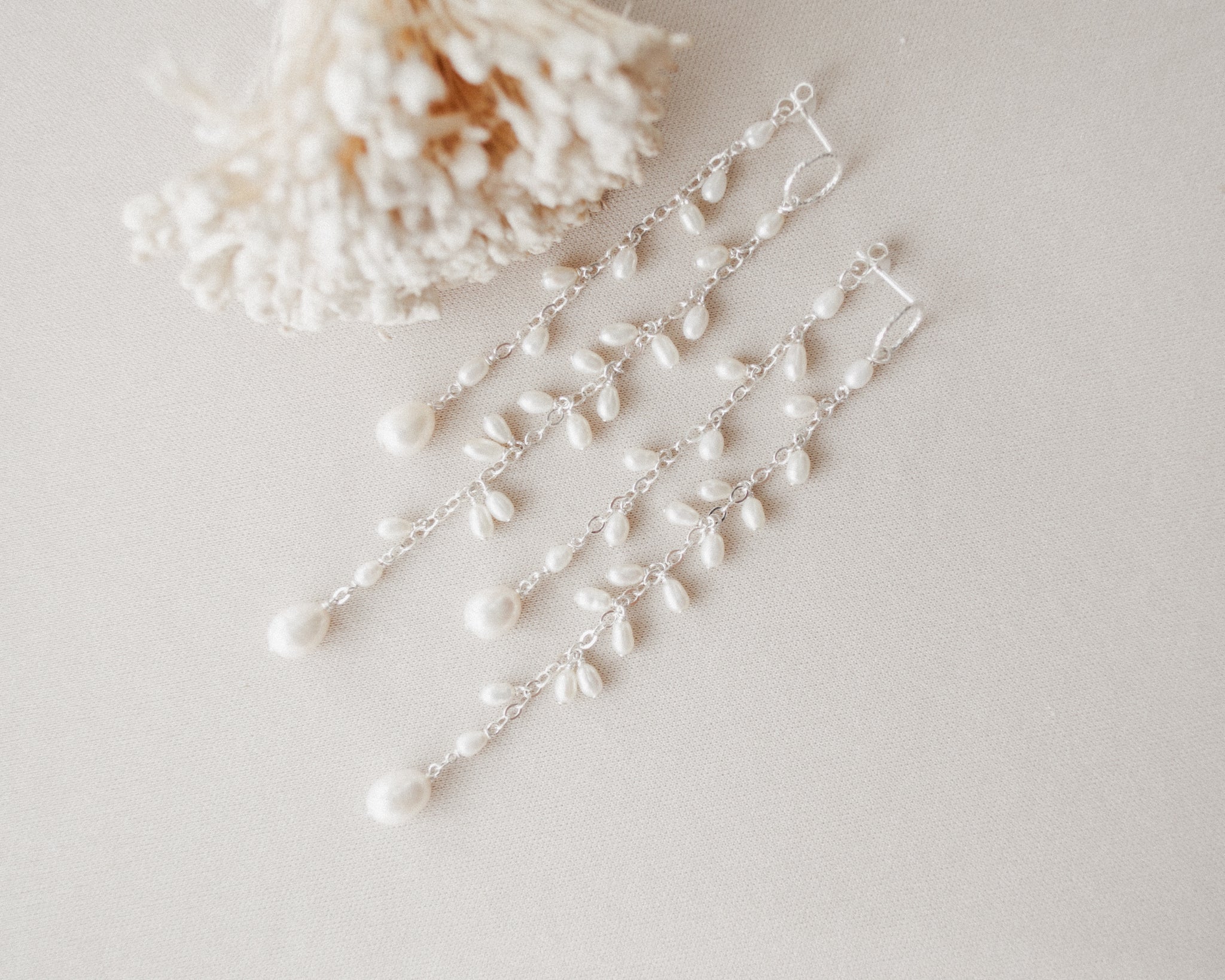 Cascading freshwater pearls with a matching back attachment Earring attachment: choice of hoop stud or solitaire crystal stud Made-to-order in our Ottawa, Canada studio Approx 3.25" in length When will my order ship? What is your return policy? Chat...Read more