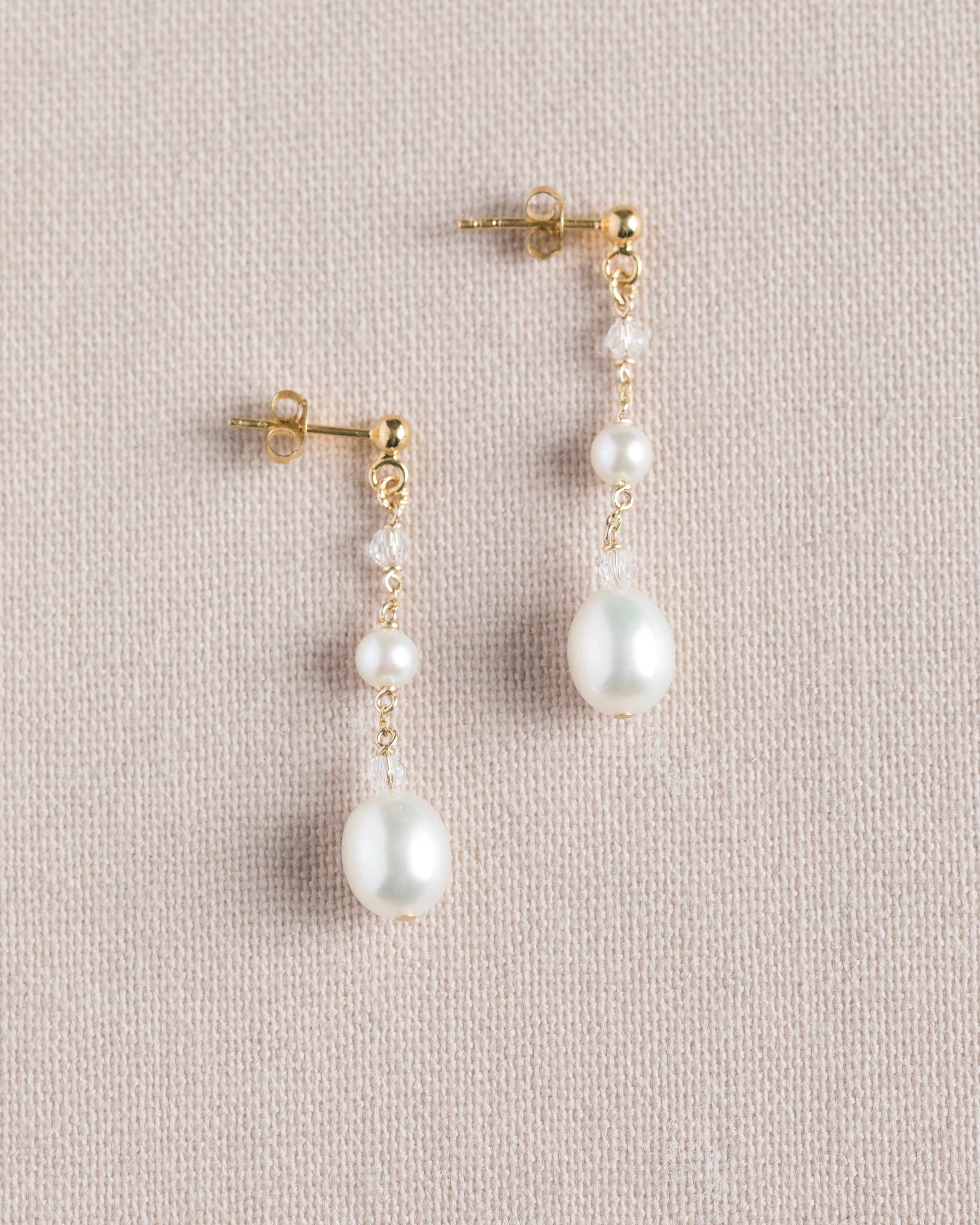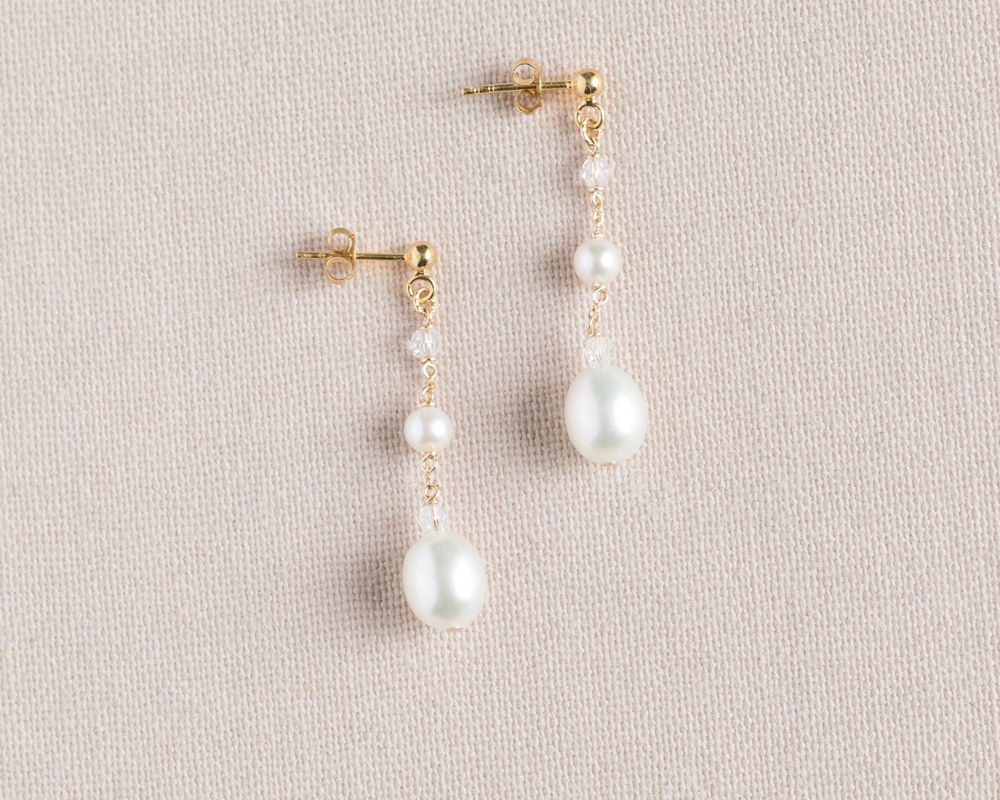 Beautiful teardrop freshwater pearls, with clear Austrian crystal accents (photos don't do the crystals justice - they add the most perfect subtle sparkle when the light hits them!) Handmade in our Ottawa, Canada studio Sterling Silver, 14kt Yellow Gold-F, or...Read more