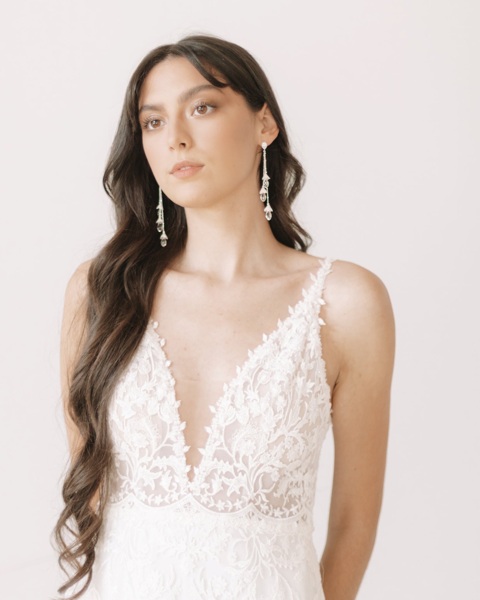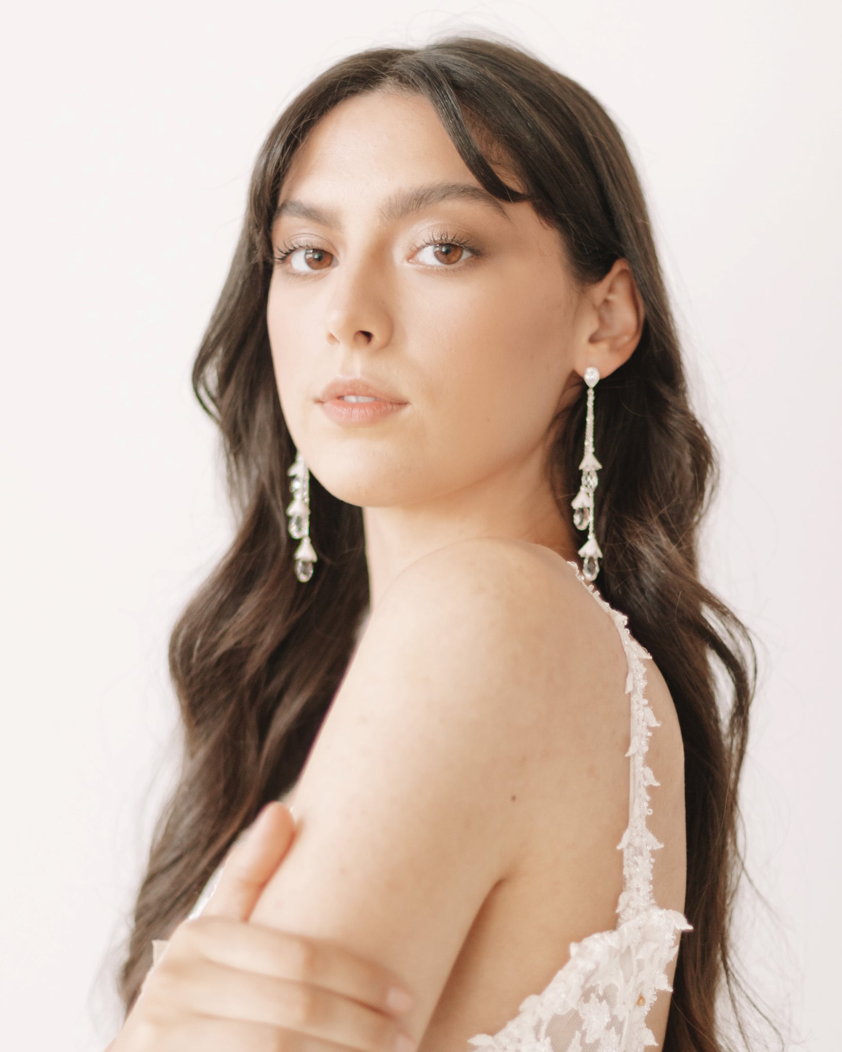 Designed with Swarovski crystals, handmade clay florals + freshwater pearl accents