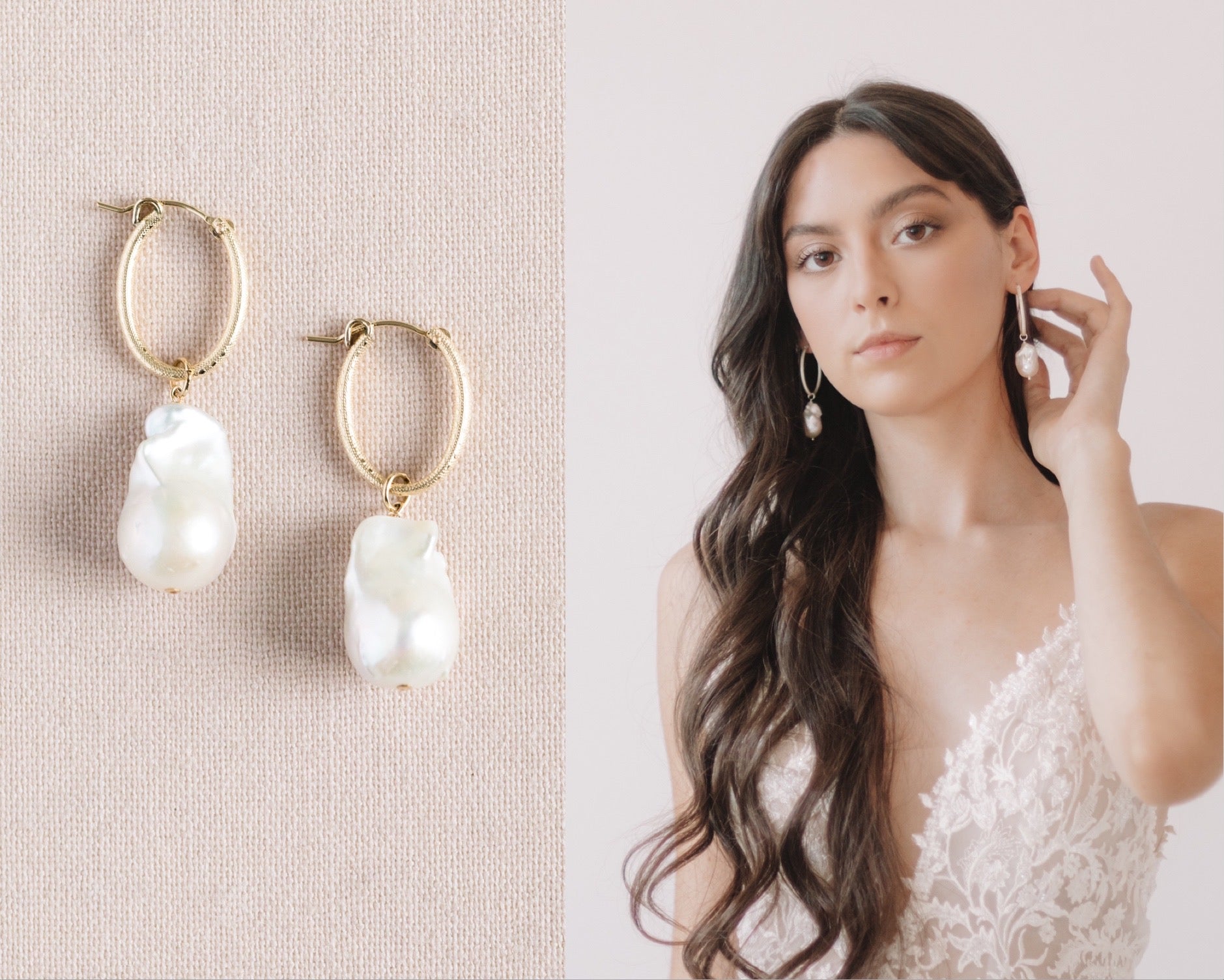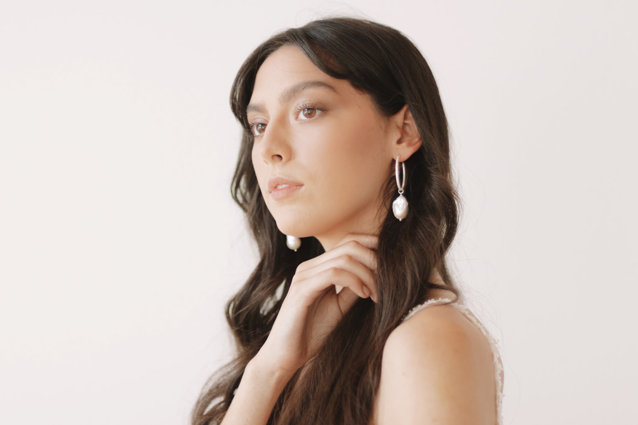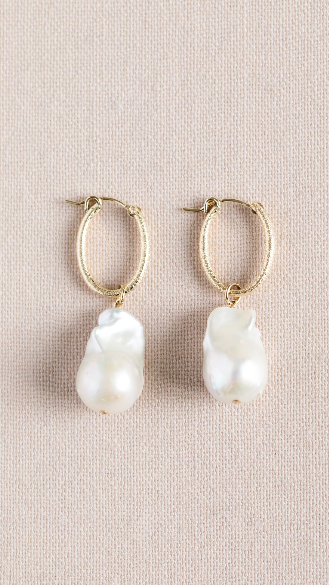 Oversized freshwater baroque pearl hoops Choice of metal: 14kt Yellow Gold F (shown), or Sterling Silver Choice of hoop size (Please note that the detail shot of the earrings show the standard sized hoop in gold. Model #1...Read more