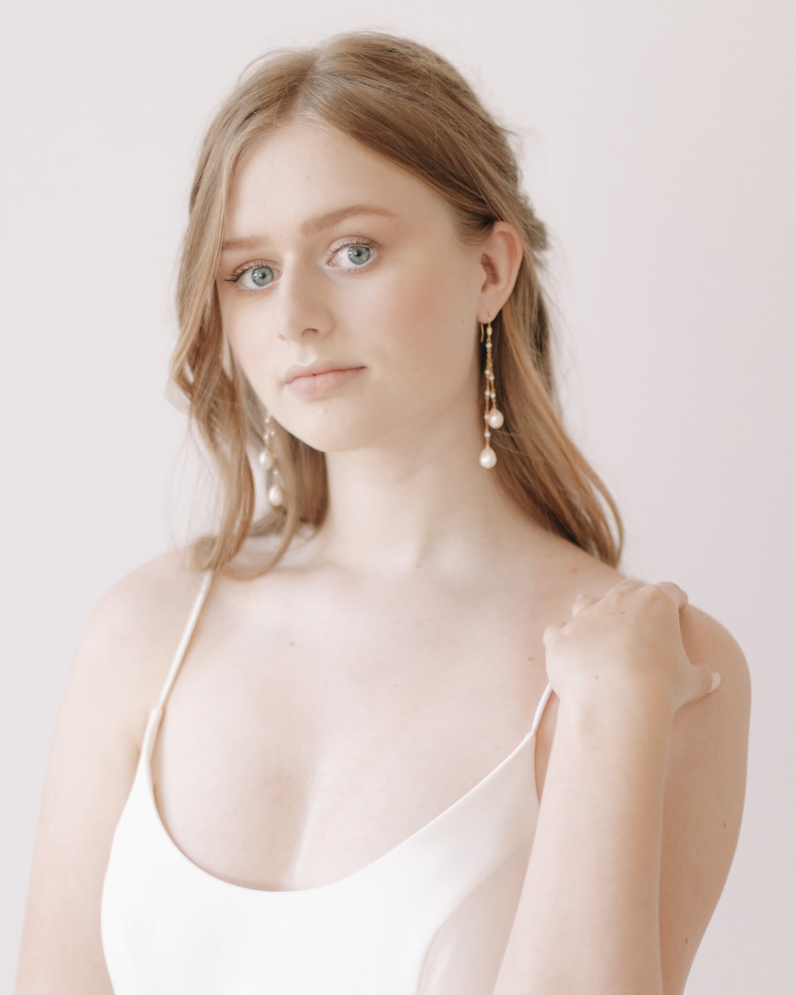 - Choice of earring attachment: crystallized stud (shown in first photo - only available in silver), crystallized hook (shown on model - available in silver or yellow gold)