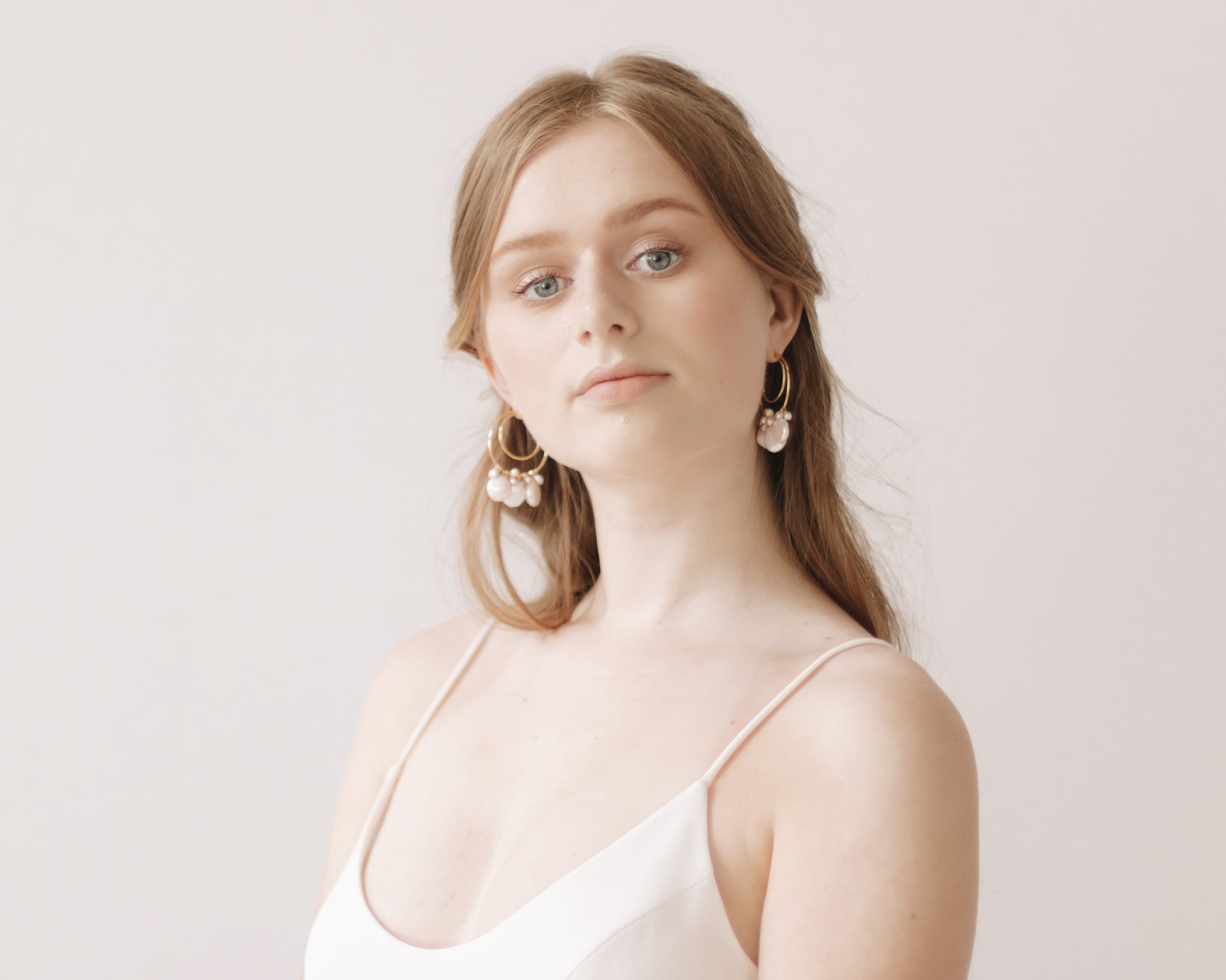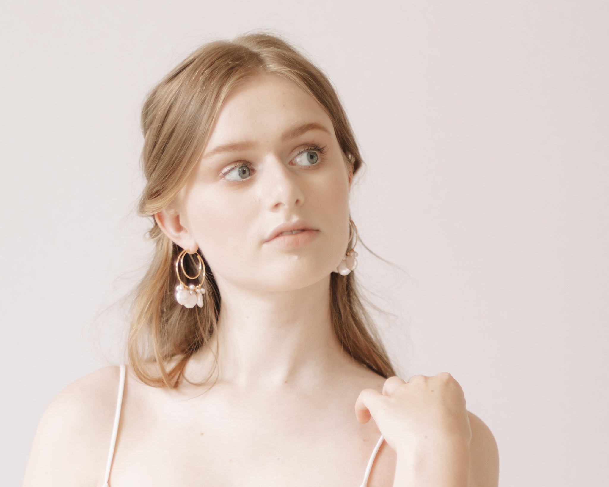 Freshwater coin pearl hoop drops Choice of metal: 14kt Yellow Gold F (shown), or Sterling Silver 2” long Made-to-order in our Ottawa, Canada studio When will my order ship? What is your return policy? Chat with a stylist!...Read more