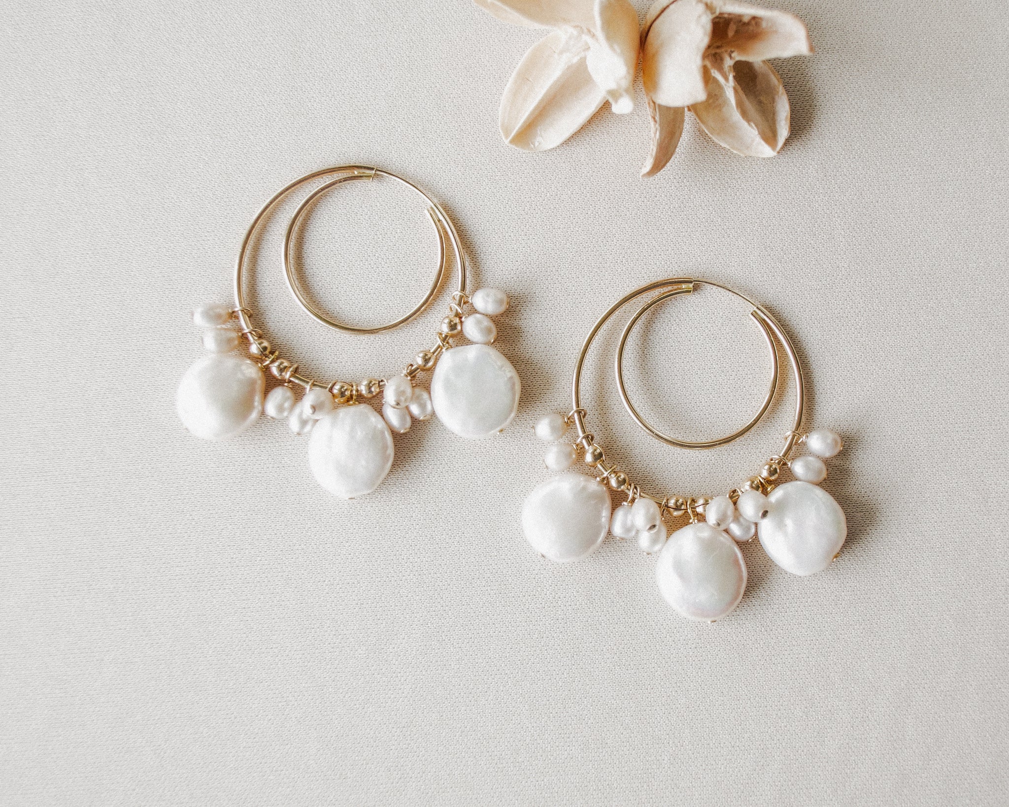 - Freshwater coin pearl hoop drops