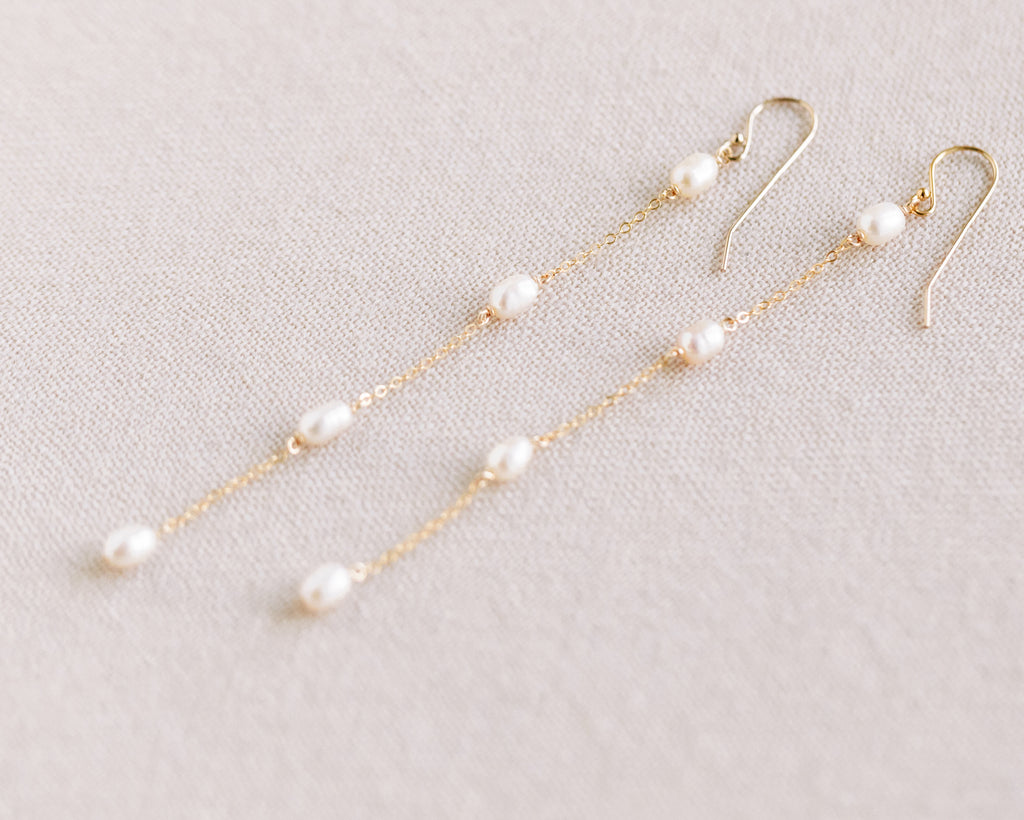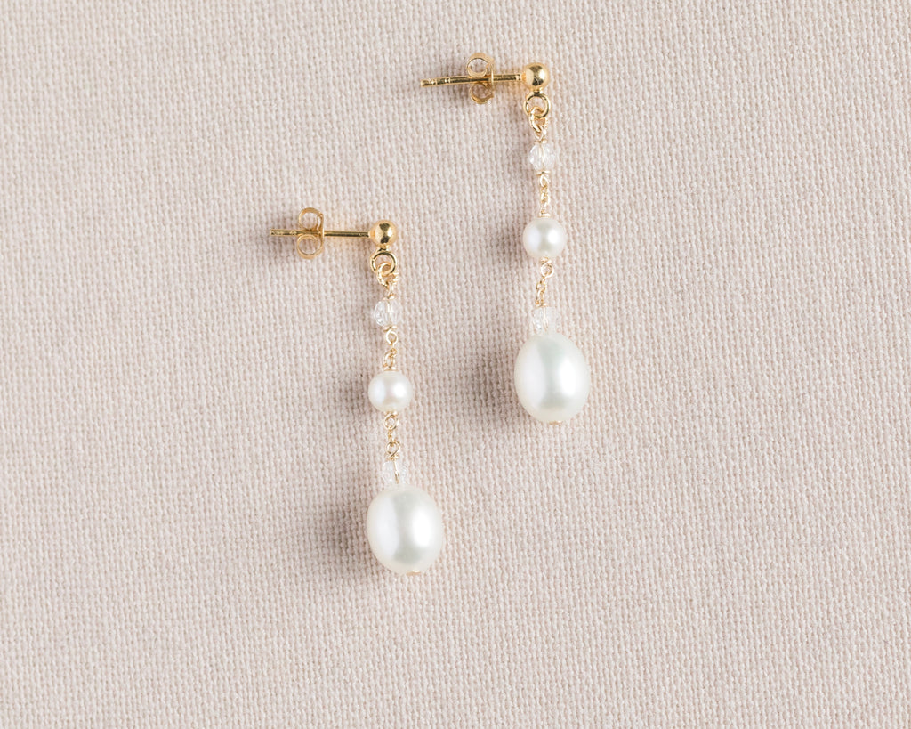 Bridal earrings handcrafted in our Ottawa, Canada studio. Made with freshwater pearls, Austrian crystals, and hypoallergenic precious metals (sterling silver and 14kt gold fill)