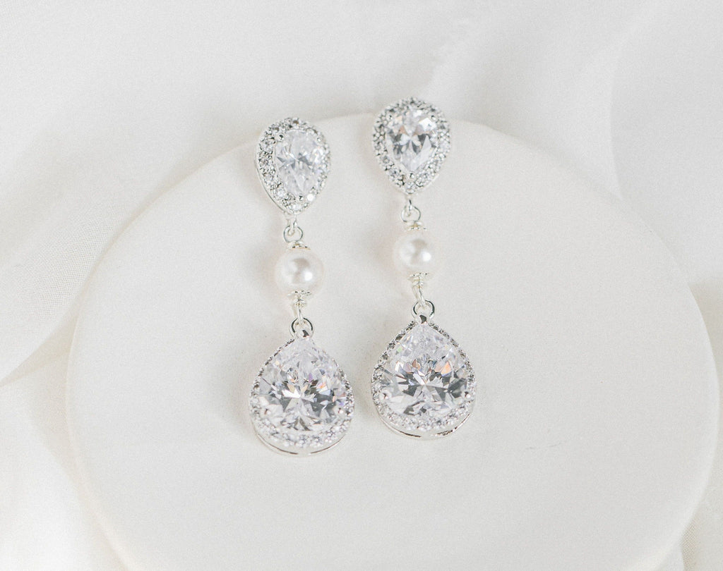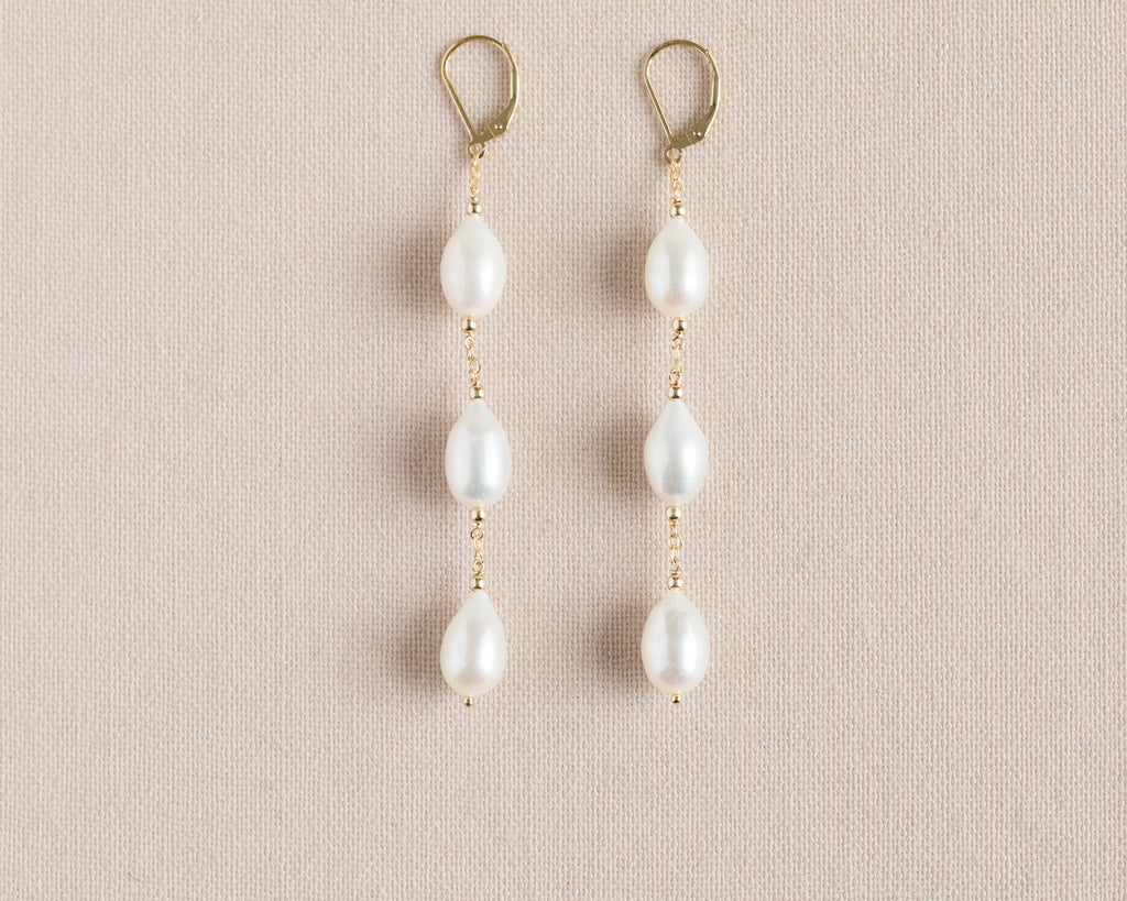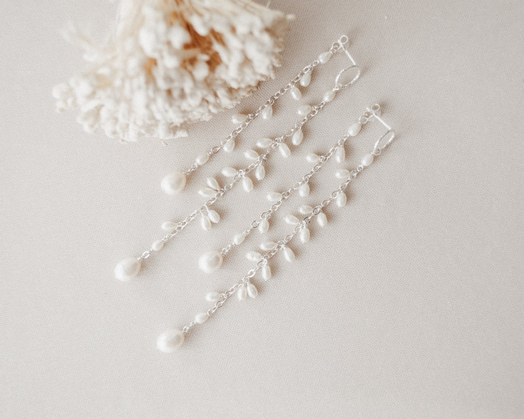 Bridal earrings handcrafted in our Ottawa, Canada studio. Made with freshwater pearls, Austrian crystals, and hypoallergenic precious metals (sterling silver and 14kt gold fill)