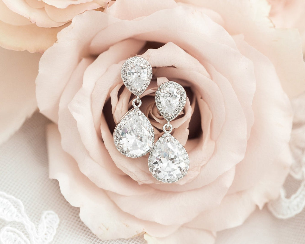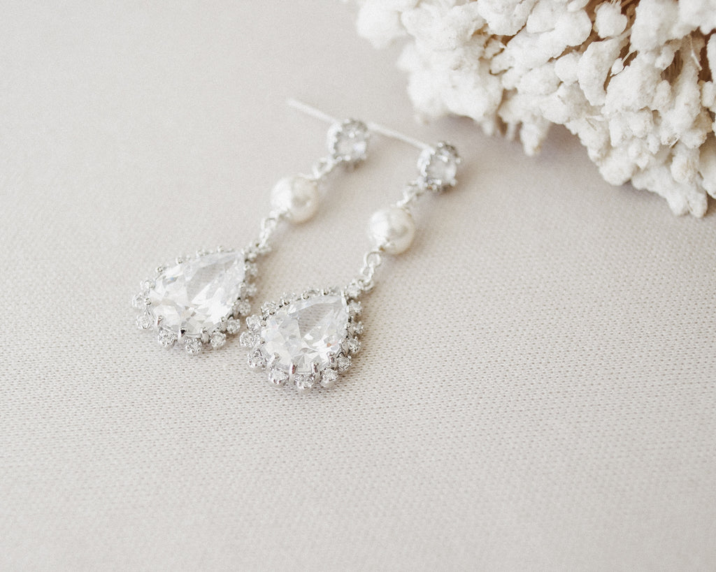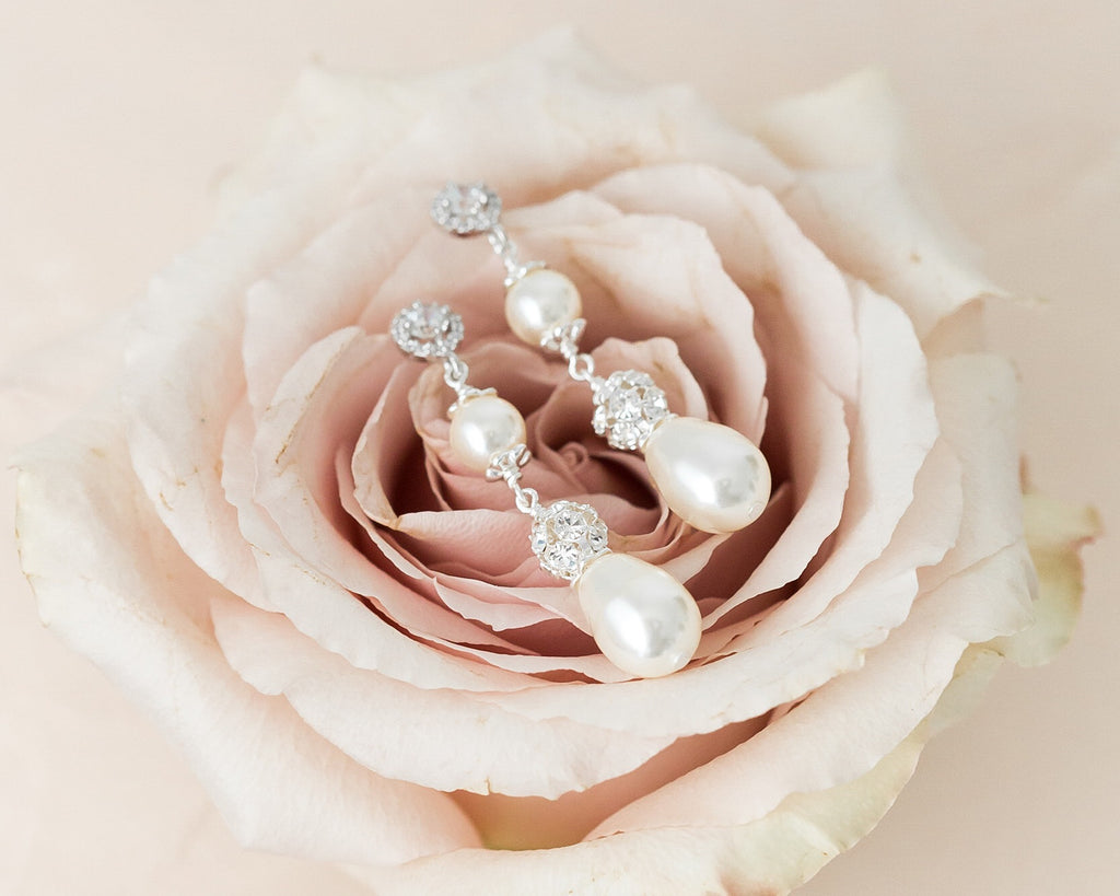 Bridal earrings handcrafted in our Ottawa, Canada studio. Made with freshwater pearls, Austrian crystals, and hypoallergenic precious metals (sterling silver and 14kt gold fill)