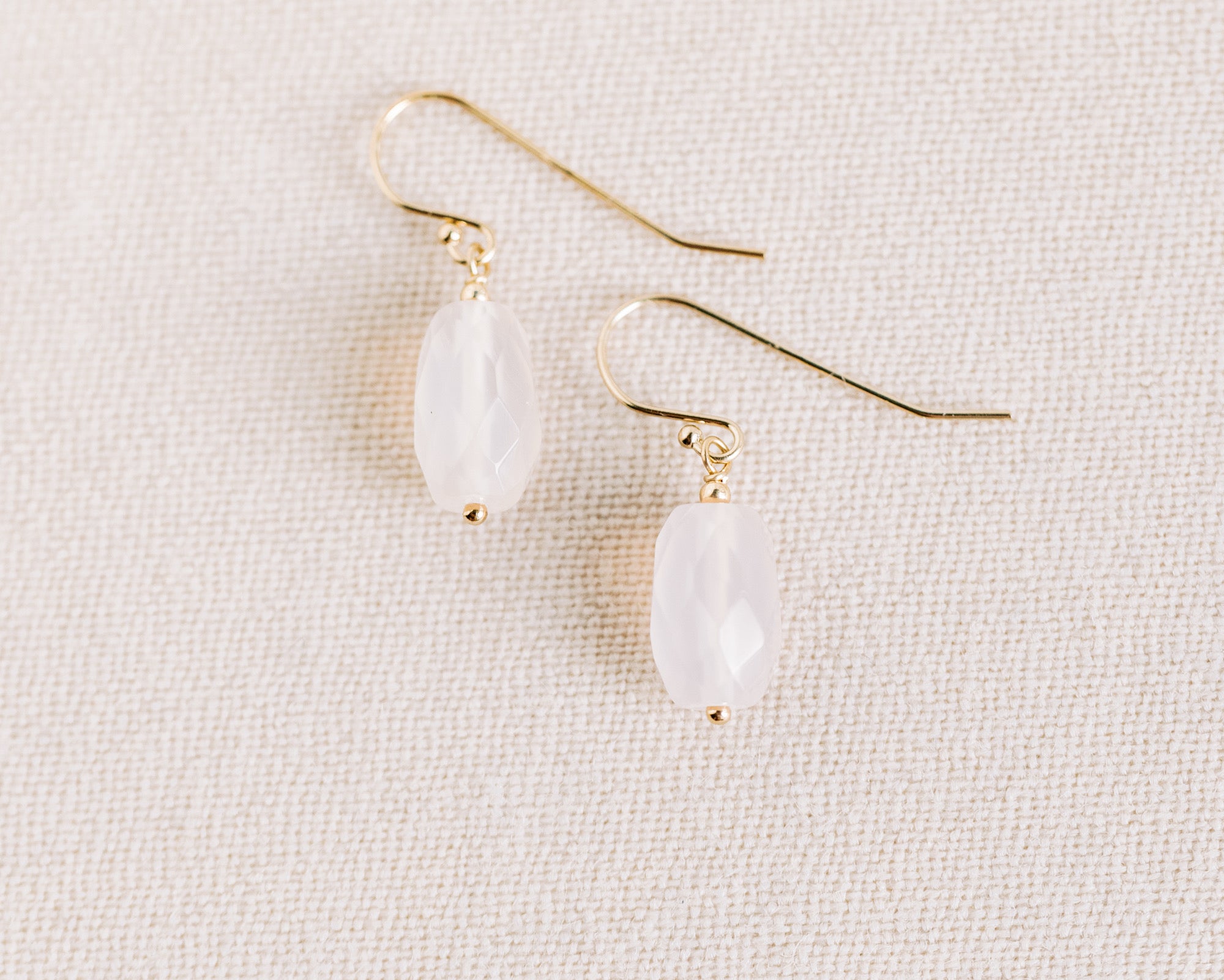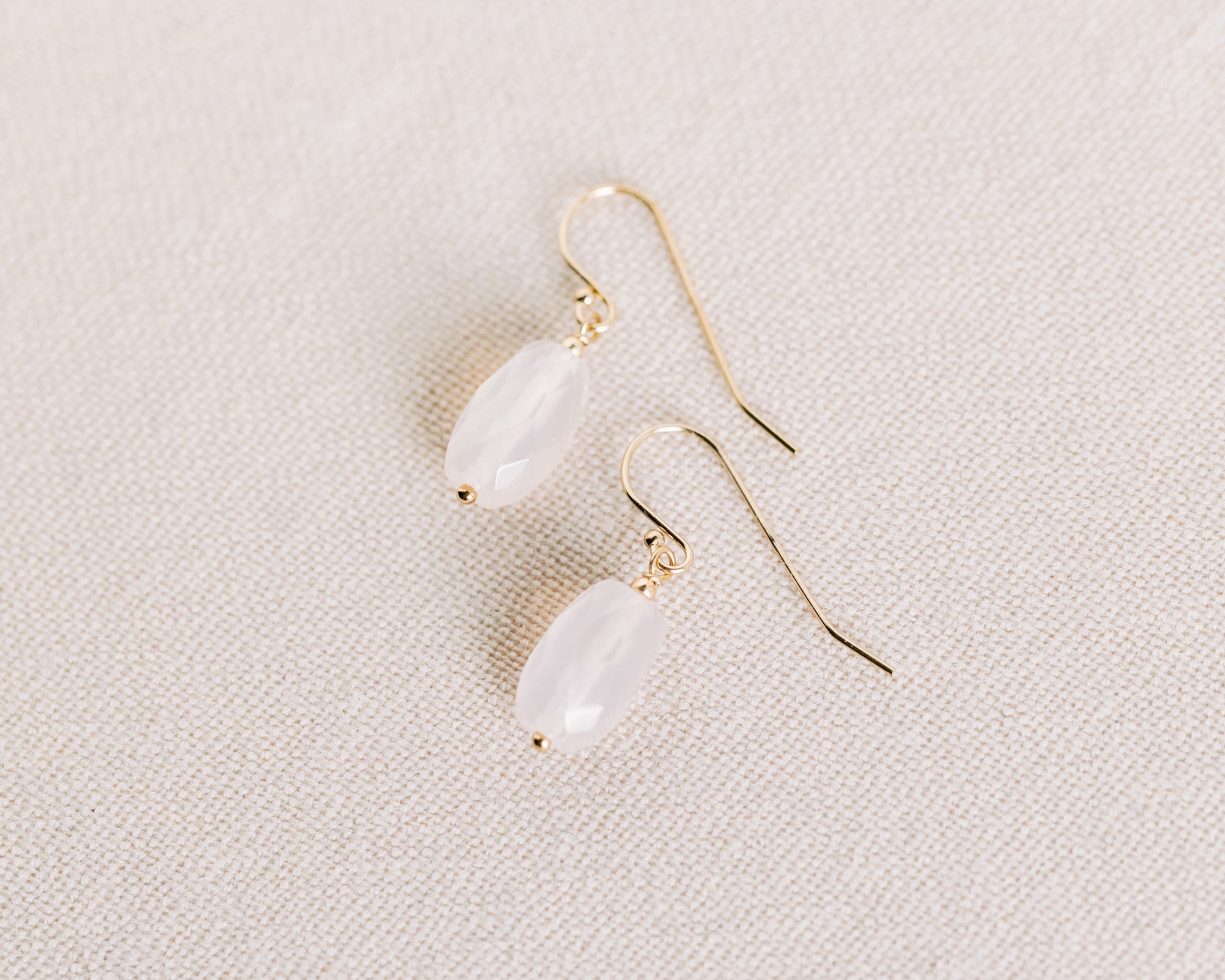 Gemstone drops (with natural blush Chalcedony stones) Choice of metal: 14kt Rose Gold F, 14kt Yellow Gold F, or Sterling Silver Matching pendant available upon request Made-to-order in our Ottawa, Canada studio When will my order ship? What...Read more