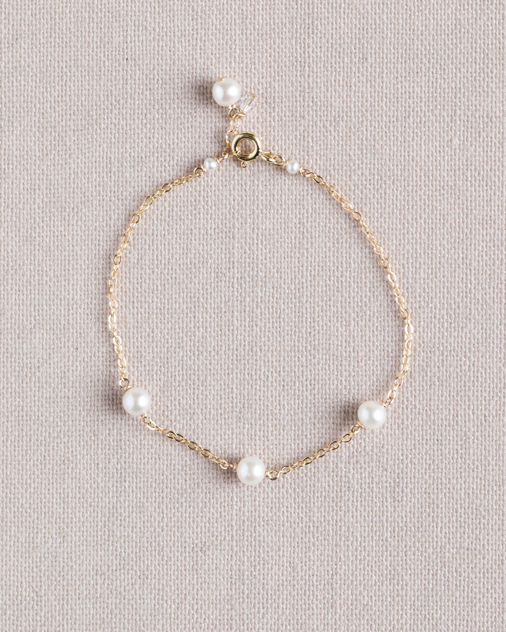 The beauty of simplicity - a trio of 5mm round pearls Small spring clasp + mini extender chain (to customize your fit!) Available in 14kt Rose Gold-f, 14kt Yellow Gold-f, or Sterling Silver Your choice of freshwater pearls (shown), or...Read more