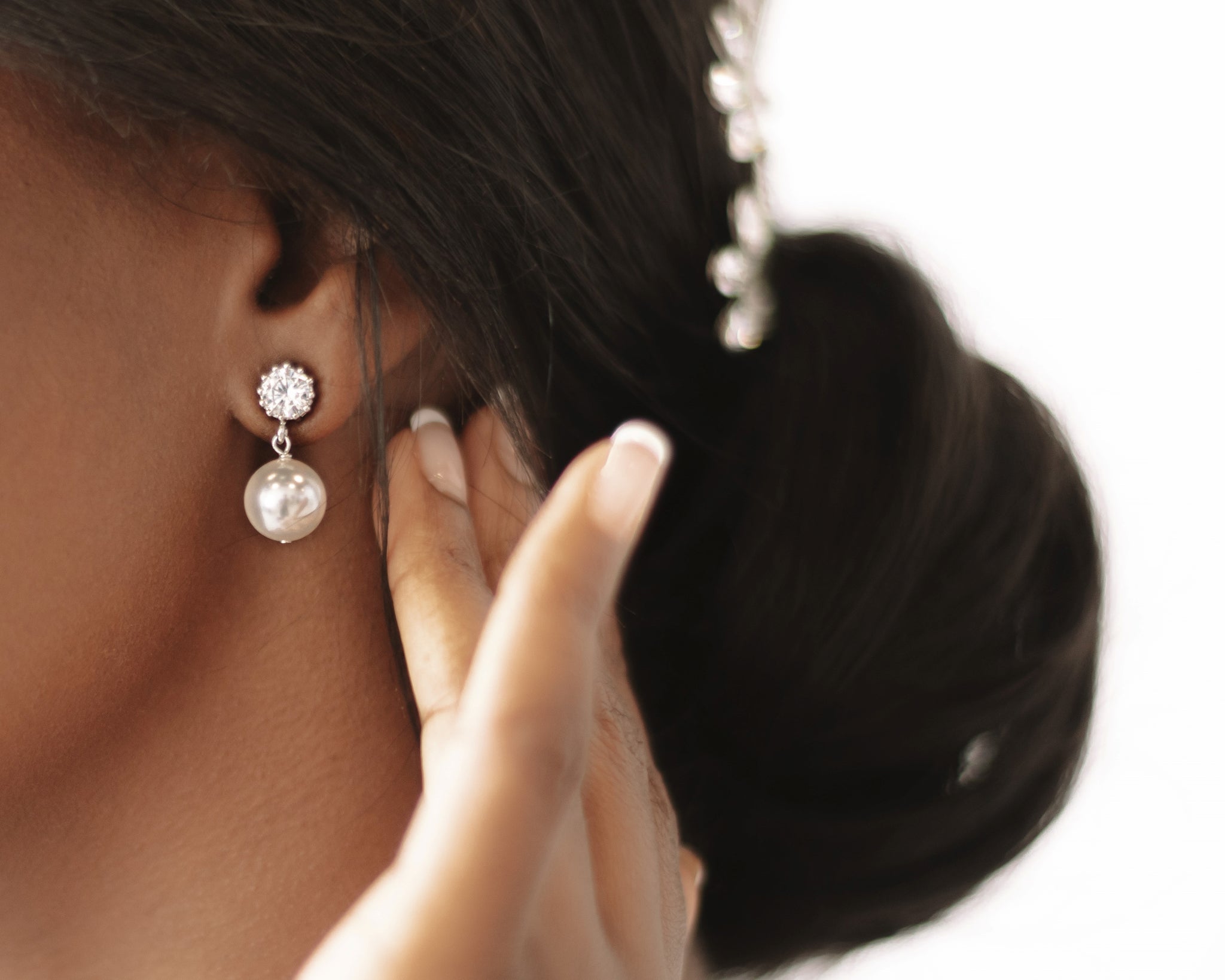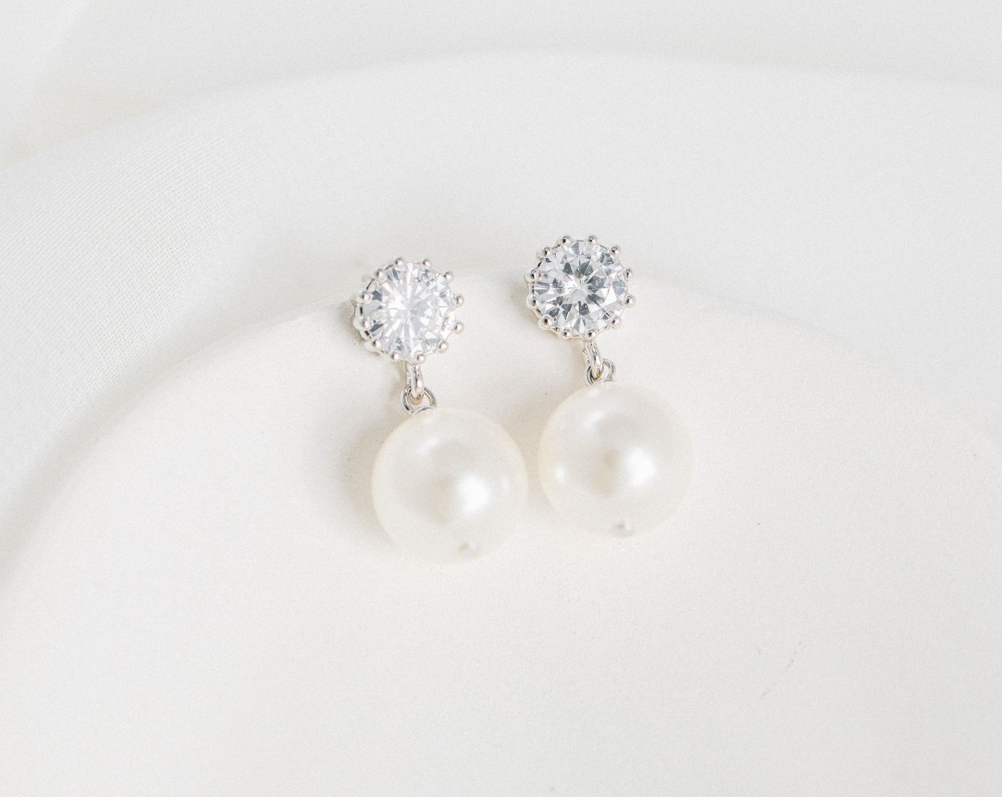 - Solitaire CZ stud with Swarovski 'crystal pearl' drop (10mm)