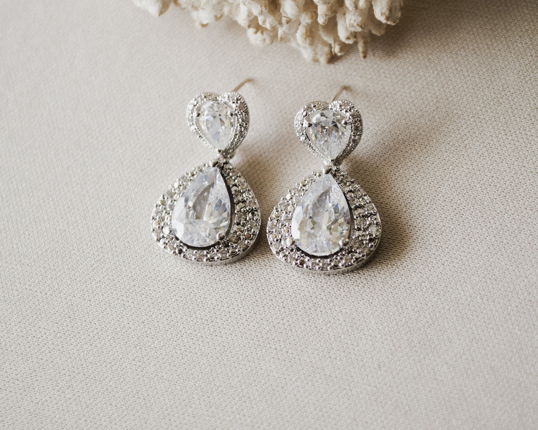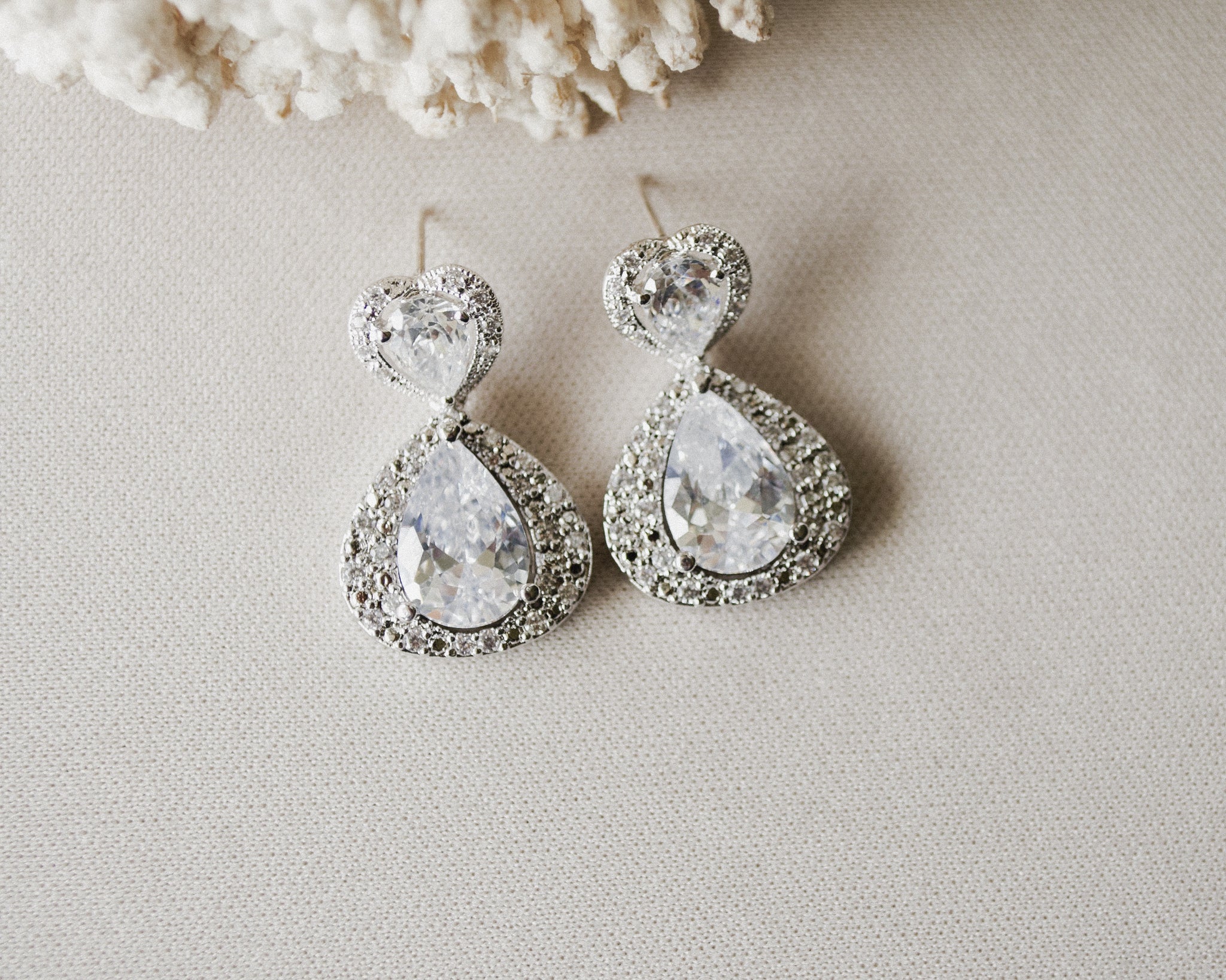 - Rhodium-plated settings, with sterling silver stud