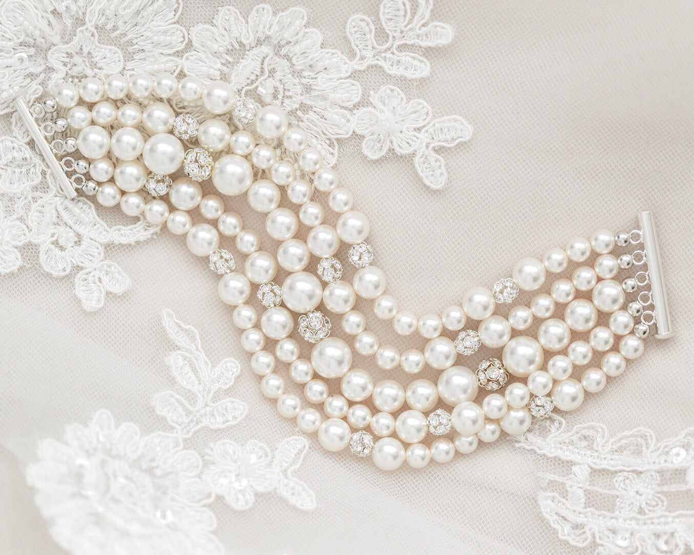 Designed with Swarovski 'crystal pearls' Swarovski Elements accents throughout Sliding tube clasp Made-to-order in our Ottawa, Canada studio. Please select exact wrist measurement (measured snug around the bone with a measuring tape). Your bracelet will be made accordingly larger...Read more