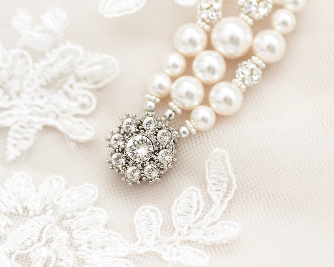 Designed with Swarovski 'crystal pearls' Swarovski Elements accents throughout Swarovski Crystal box clasp Made-to-order in our Ottawa, Canada studio. Please include exact wrist measurement in the checkout (measured snug around the bone with a measuring tape). Your bracelet will...Read more