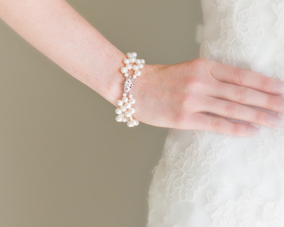 Designed with 'natural white' Freshwater Pearls Swarovski Elements accents throughout Rhodium CZ box clasp Made-to-order in our Ottawa, Canada studio. Please include exact wrist measurement in the checkout (measured snug around the bone with a measuring tape). Your bracelet will...Read more