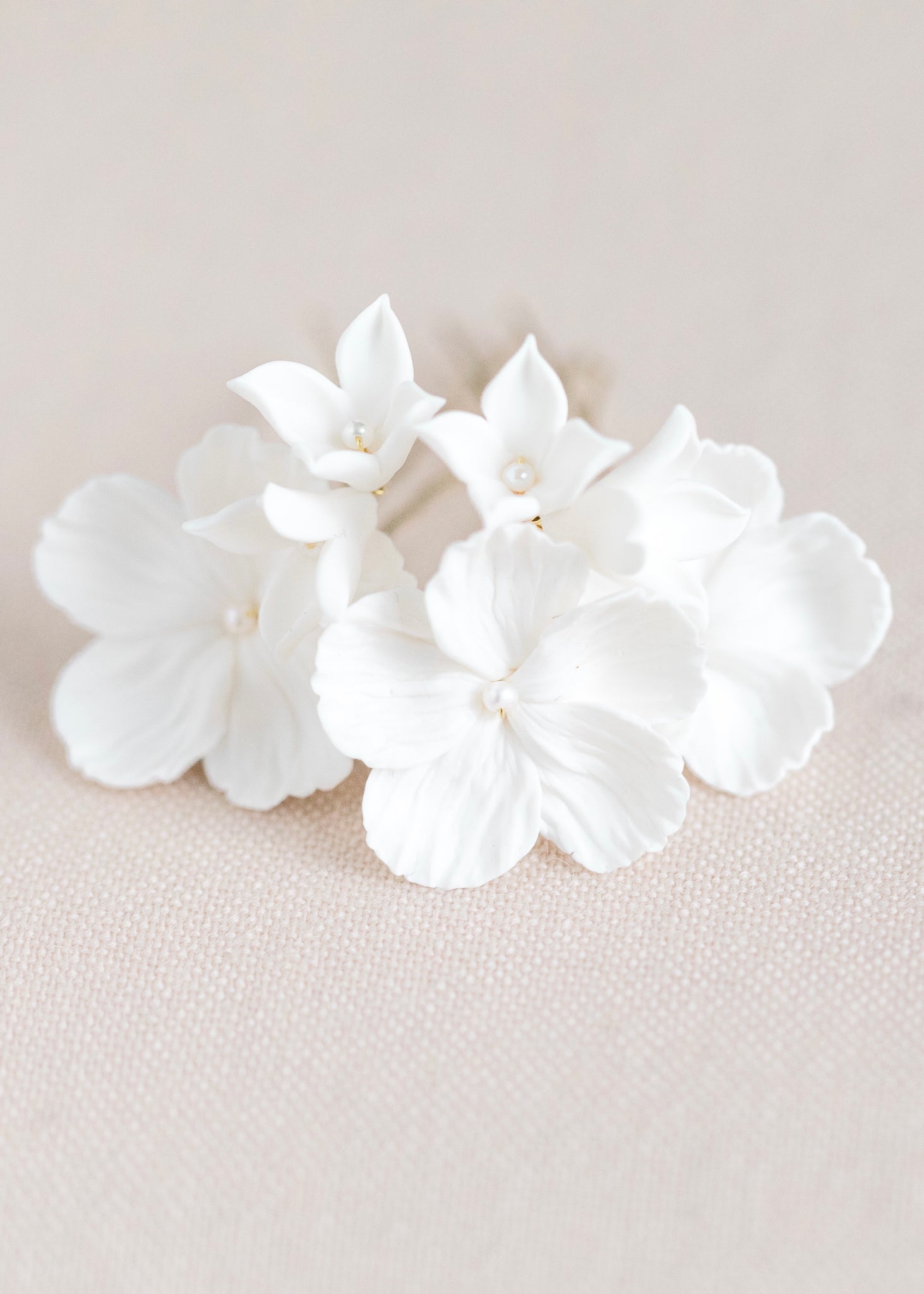 - Designed with handmade clay florals + freshwater pearls