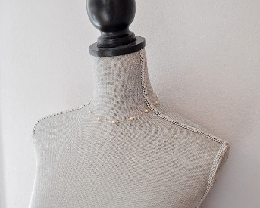 Designed with freshwater pearls (choice of natural white or light blush) Available in 14kt yellow gold-f, 14kt rose gold-f, or sterling silver Small spring clasp with 2" extender at back Made-to-order in our Ottawa, Canada studio When will my...Read more
