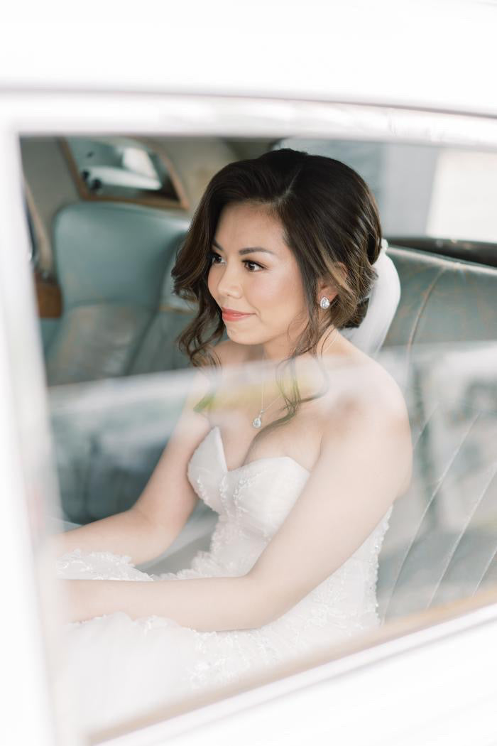 - Designed with halo-set CZ crystal stones