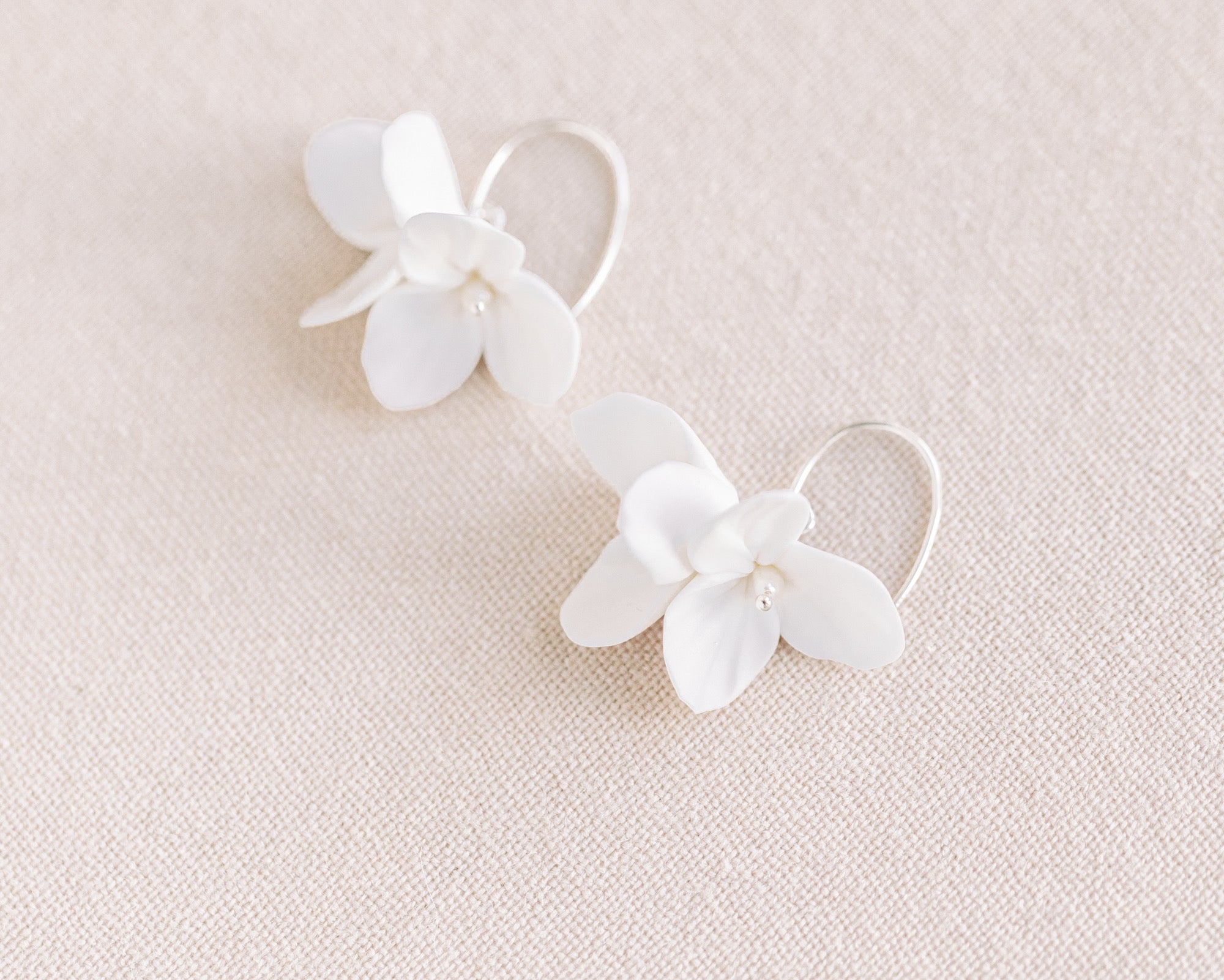 Blooms with freshwater pearls Each clay floral is handmade with love <3 Earring attachment: hook Lightweight design (clay florals aren't heavy at all!) Made-to-order in our Ottawa, Canada studio 1” in length When will my order ship? What is...Read more