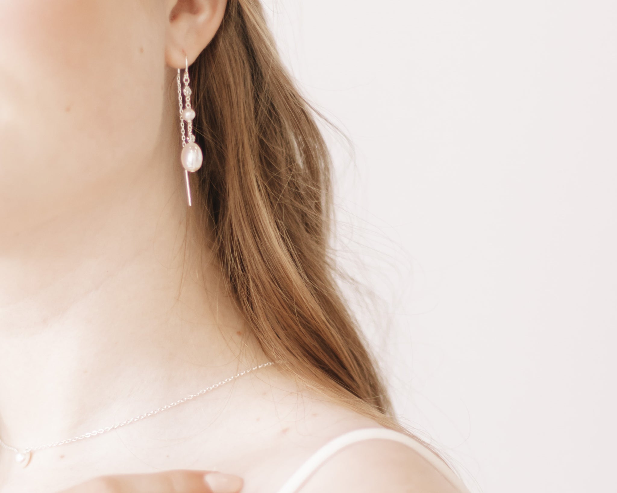 - Choice of earring attachment: threader (shown on model), stud (shown in detail shot), or plain hook (not pictured)