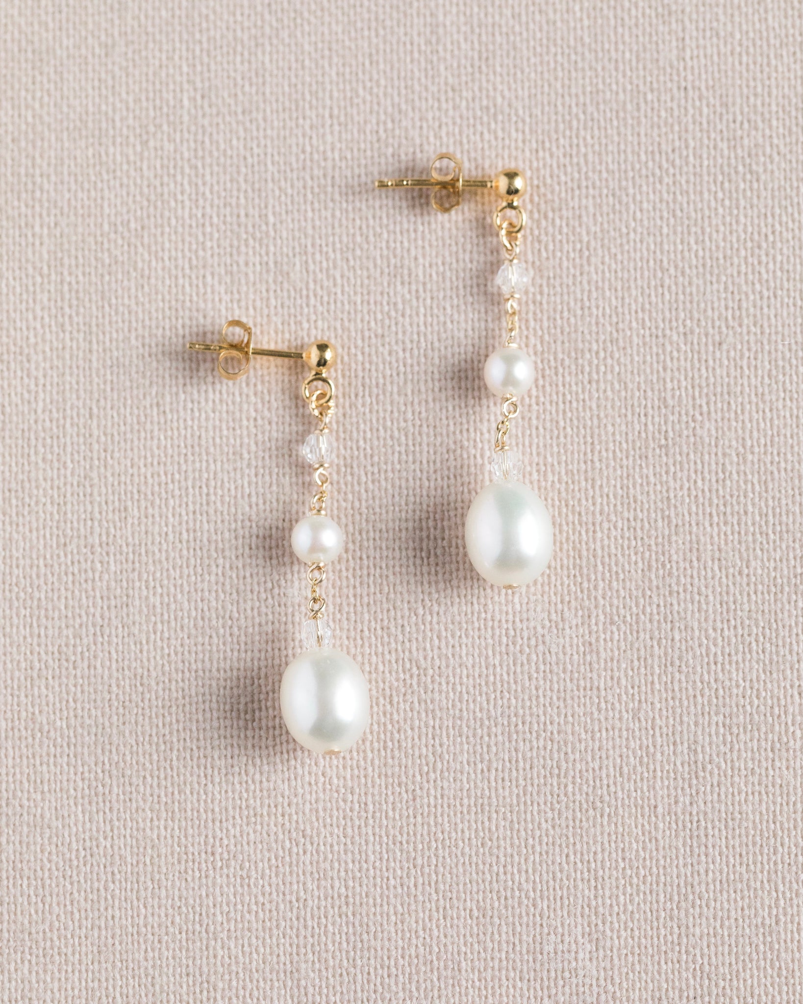 Beautiful teardrop freshwater pearls, with Austrian crystal accents (photos don't do the crystals justice - they add the most perfect subtle sparkle when the light hits them!) Handmade in our Ottawa, Canada studio Sterling Silver or 14kt Yellow...Read more