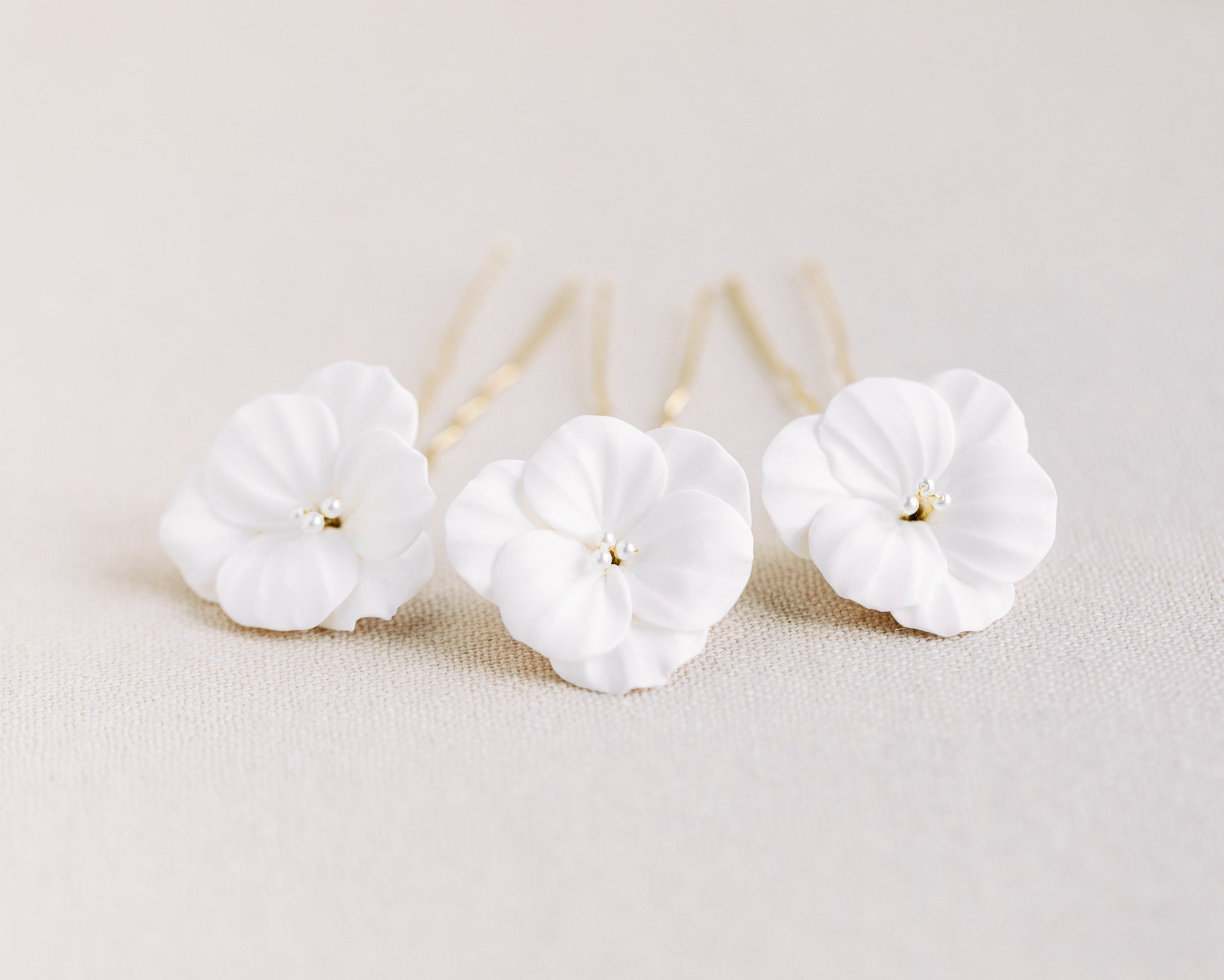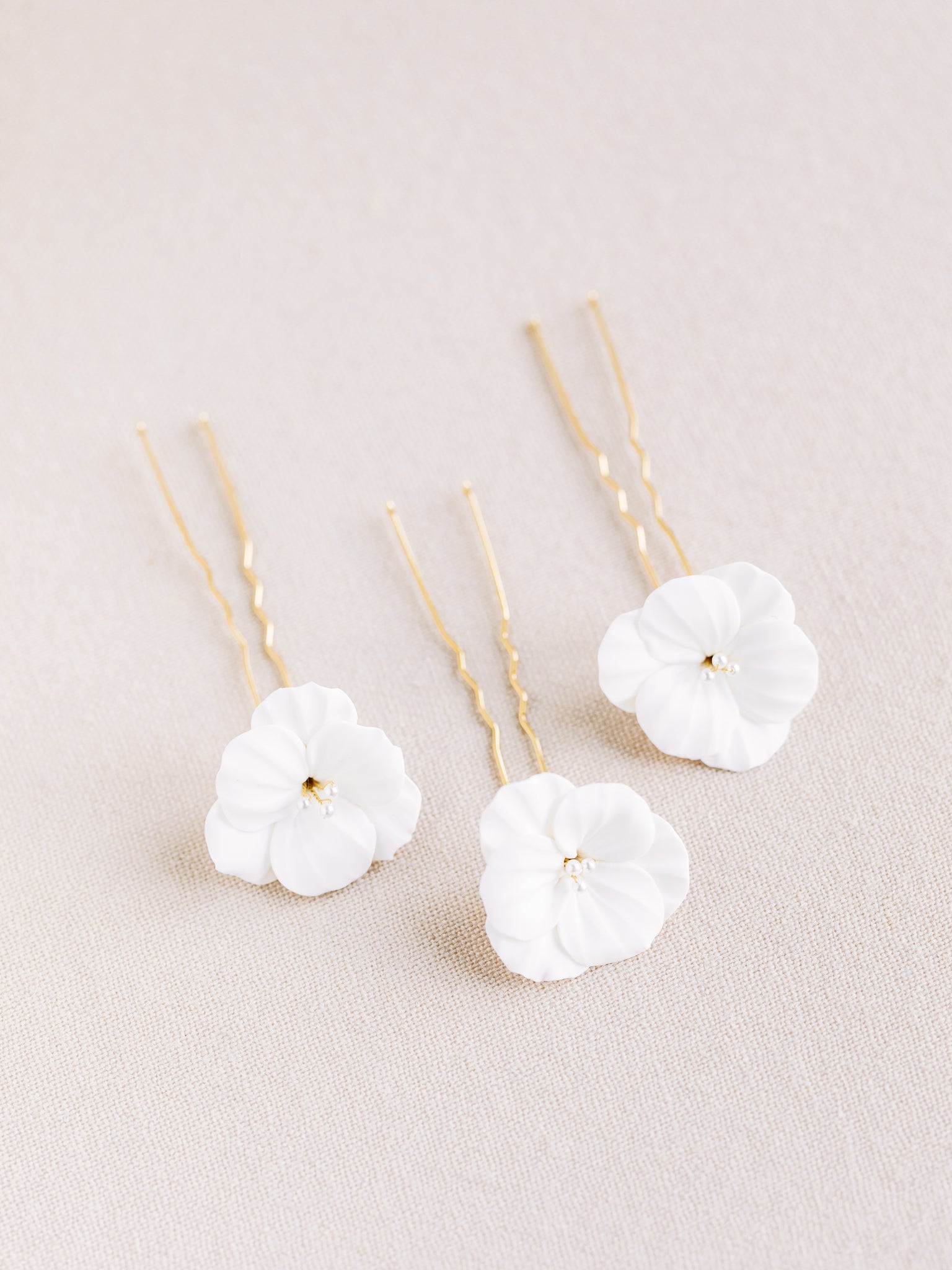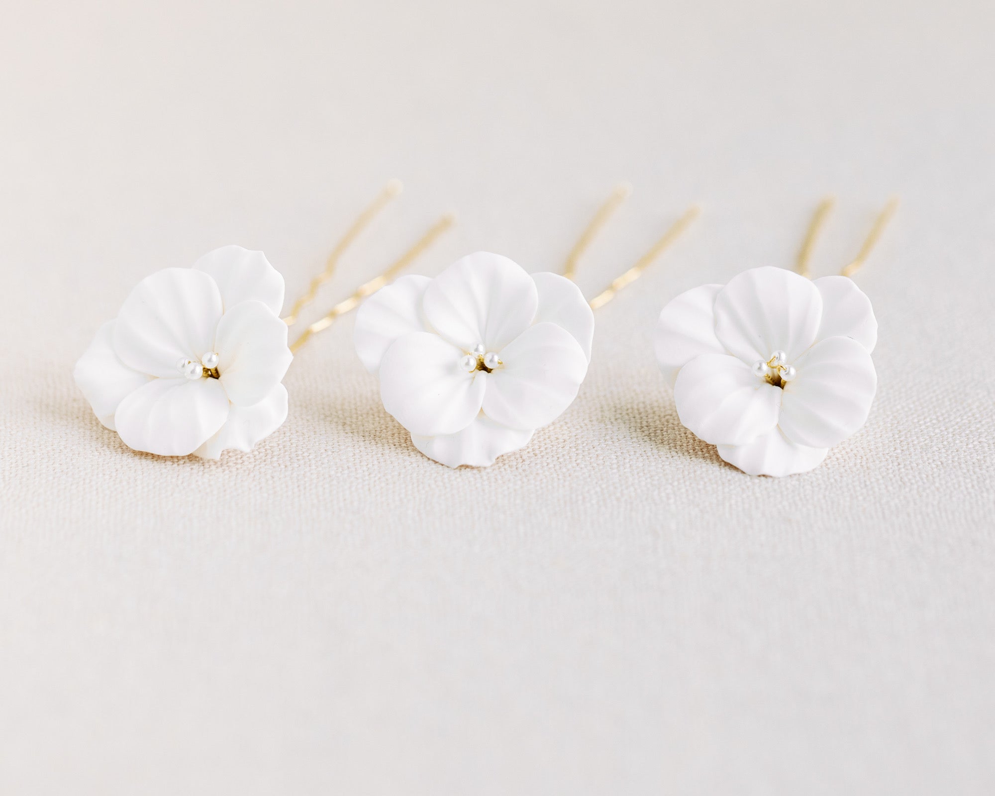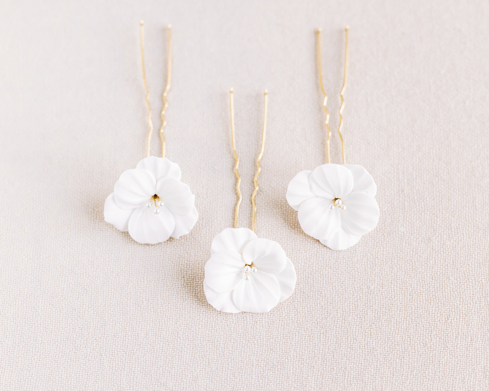 Designed with handmade clay florals + freshwater pearls Set of 3 or 5 pins These pins are so versatile - cluster them together, or space them out! Blooms are flexible / handle with care Handmade in our Ottawa, Canada...Read more